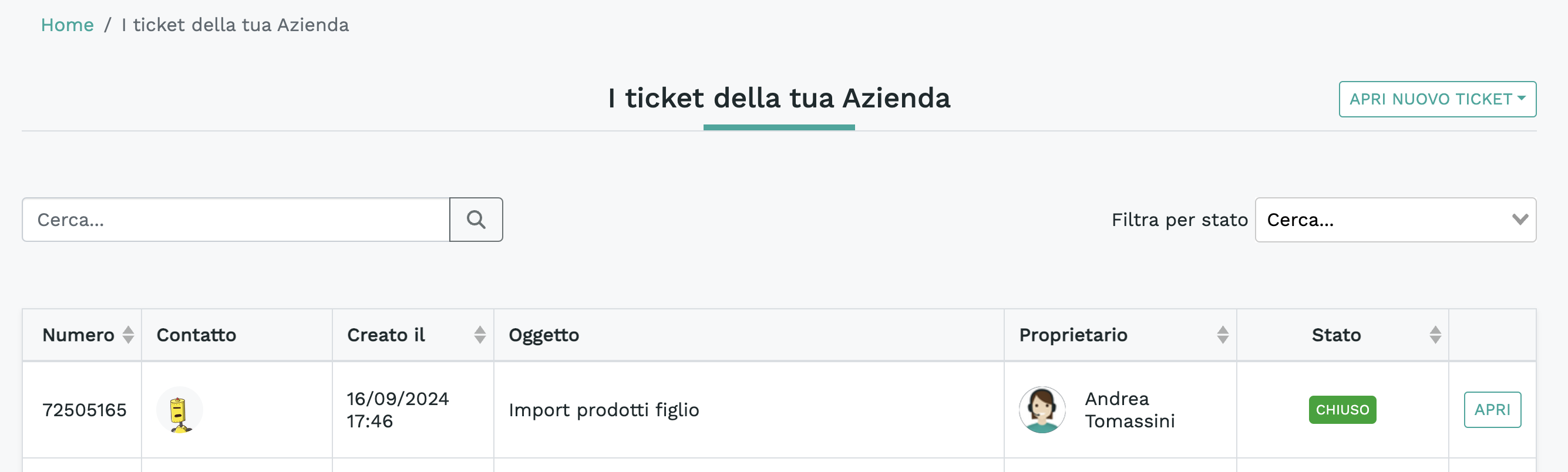 Cliccando sulla sezione “I tuoi ticket” potrai vedere: